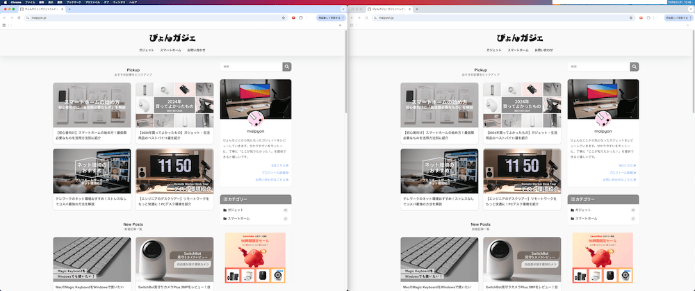 実際に並べてみたのが以下の画像ですが、どちらもブログトップページの横幅に余裕があります。